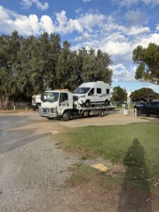 • mit dem Abschleppwagen auf den Campingplatz