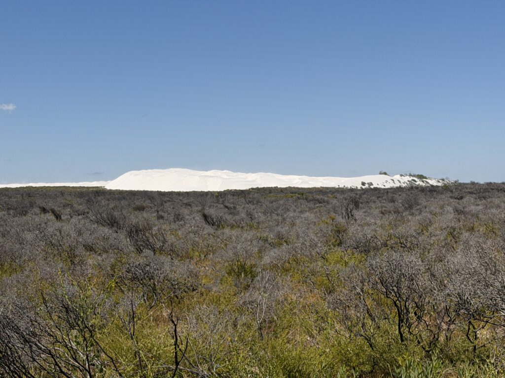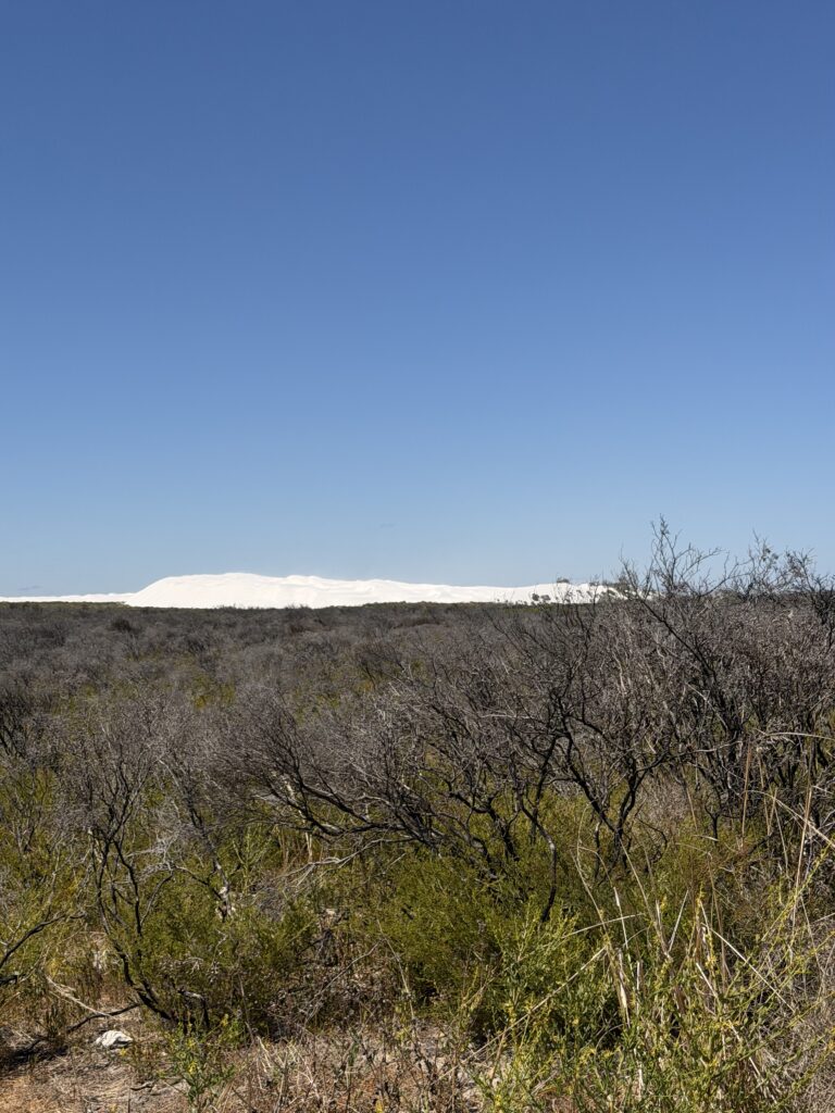 und hier noch ein paar Bilder, welche ich auf der Hinfahrt vor ein paar Tagen gemacht habe. Was aussieht wie eine heruntergefallene Wolke, ist eine schneeweisse Sanddüne