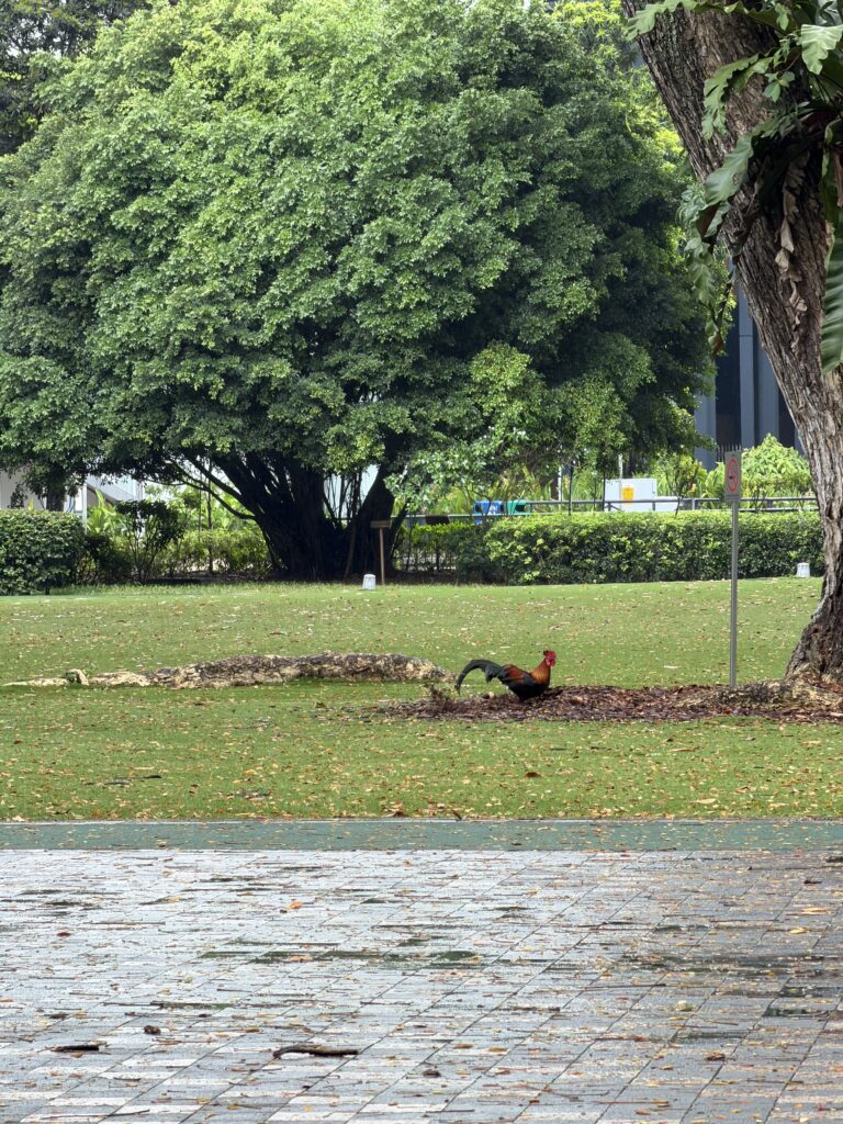 Chicken Familie auf einer Wiese in Singapur
