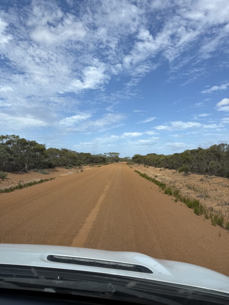 an unzähligen Road-Trains vorbeigedonnert (das sind Lastwagen mit mehreren Anhängern)